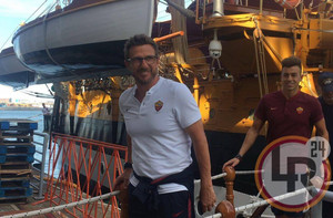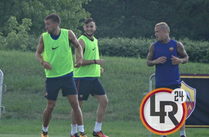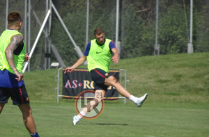 DA BOSTON DAMIANO FRULLINI - 10 minuti di fitto colloquio tra il presidente della Roma James Pallotta e Radja Nainggolan al termine della seduta pomeridiana di allenamento. Il numero uno giallorosso si è intrattenuto con il belga in un lungo e animato scambio di opinioni che si è concluso con un bell'abbraccio che lascia presagire una fine positiva nella trattativa che porta al rinnovo del centrocampista