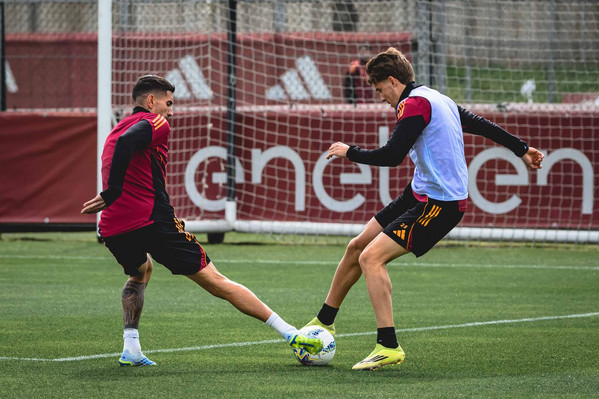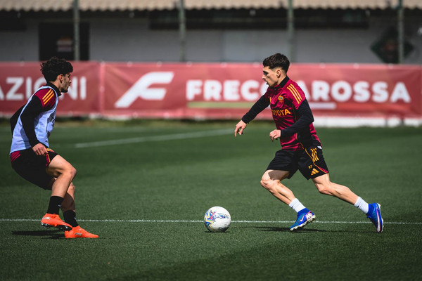 La Roma continua a lavorare al centro sportivo 'Fulvio Bernardini' di Trigoria e questa mattina gli uomini di Gian Piero Gasperini hanno svolto l'ultimo allenamento della settimana. Considerando l'assenza di ben 13 calciatori a causa delle convocazioni con le rispettive nazionali, alla seduta sono stati aggregati alcuni giovani come Raul Zinni, Mohamed Seck, Francesco Panico e Mattia Della Rocca. L'allenatore giallorosso può sorridere, dato che le condizioni di Matias Soulé sono in miglioramento dopo il lungo stop per la pubalgia: l'attaccante argentino si è allenato ancora una volta con il resto del gruppo e punta alla convocazione in vista del big match di San Siro contro l'Inter, in programma nel giorno di Pasqua alle ore 20:45. Fasciatura al polpaccio sinistro per Mario Hermoso, ma il difensore spagnolo si è allenato regolarmente con i compagni.