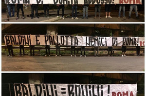 FOTO - Curva Sud, striscioni contro ‘La Repubblica’ e contro la società: “Baldini e Pallotta nemici ...