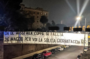 FOTO - Striscione dei tifosi laziali al Colosseo: "Da De Rossi alla coppa in faccia, il 26 maggio pe...