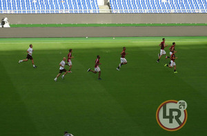 Roma-Sassuolo, esercizi atletici sul prato dell'Olimpico per panchinari e subentrati (FOTO)