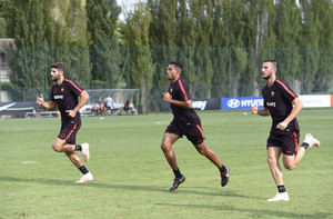 Trigoria: ripresa in palestra. Perotti e Karsdorp in gruppo, a parte De Rossi e Luca Pellegrini. Dom...