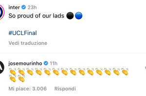 Instagram, Mourinho commenta con gli applausi un post dell'Inter sulla finale di Champions (FOTO)