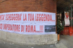 Totti, striscione in Via Vetulonia: "Nell'eternità echeggerà la tua leggenda: unico imperatore di Ro...