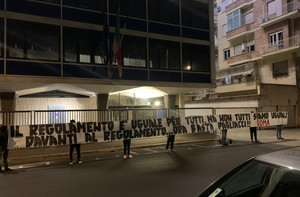 FOTO - Roma, striscione dei tifosi sotto la sede della Figc: «Non tutti siamo uguali davanti al rego...