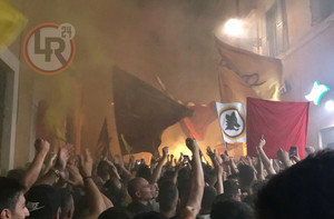 As Roma: corteo di 2mila tifosi in via degli Uffici del Vicario per festeggiare i 92 anni del club. ...