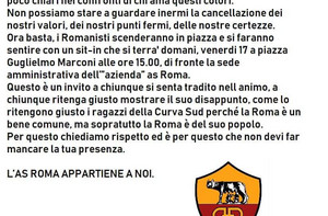 Curva Sud, domani sit-in davanti alla sede della società all'Eur: "DDR l'ultimo dei comportamenti po...