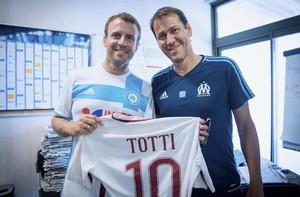 Twitter, il presidente francese Macron posa con Rudi Garcia e una maglia di Totti (FOTO)