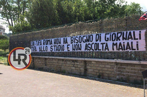 Roma-Napoli, striscione all'esterno dell'Olimpico: "Chi tifa Roma non ha bisogno di giornali" (FOTO)