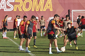 Trigoria, rifinitura in vista del Betis: torello e partitella a campo ridotto. Individuale per Pelle...